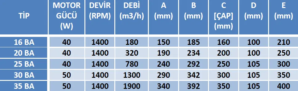 Tip: Baca Tipi Aksiyel Aspiratör.