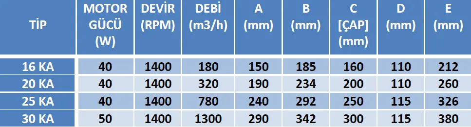 Kare Gövdeli Normal Motorlu Aspiratörler